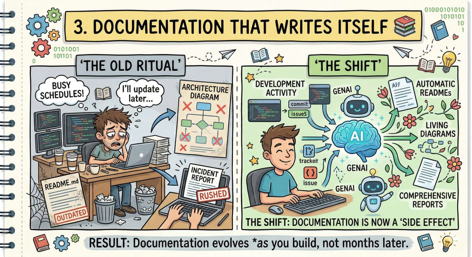 The Shift: Documentation is now a "side effect" of development, not a separate task.