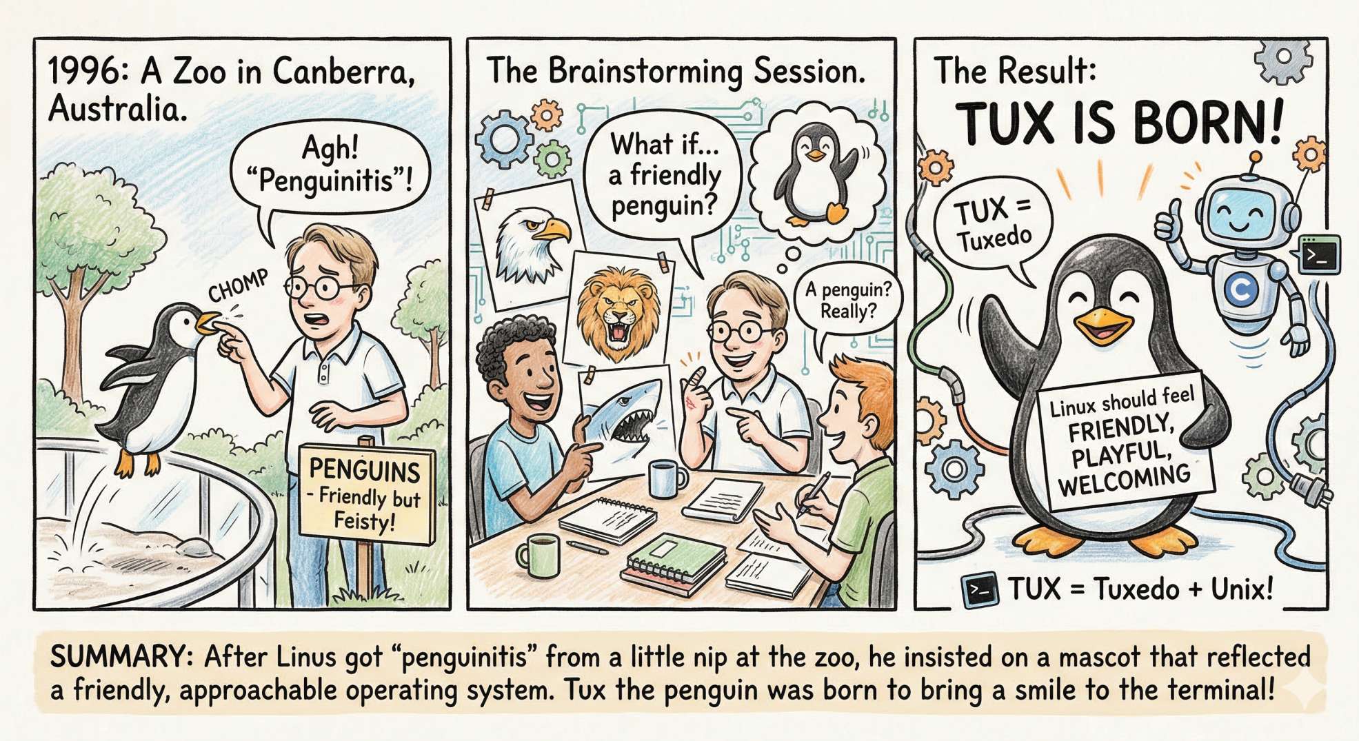 2. Tux the Penguin: Why? (Hint: Linus Got Bit!) 🐧